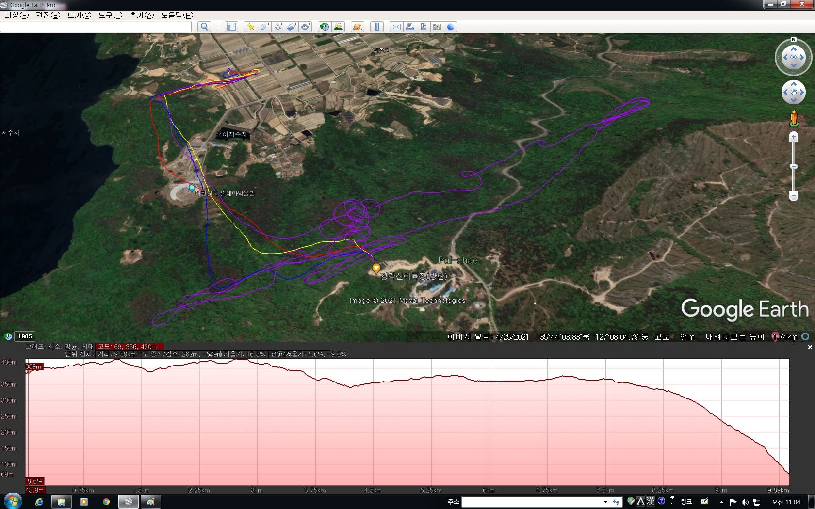 8.이륙고도 : 380m (최고 Flightlog 431m / dump=구글어스 430m) 착륙 70m