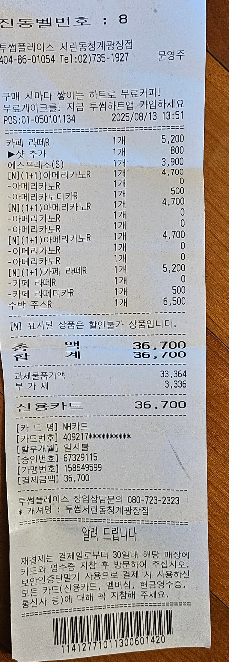 투썸 카페에서 커피 잘마셨습니다 감사합니다