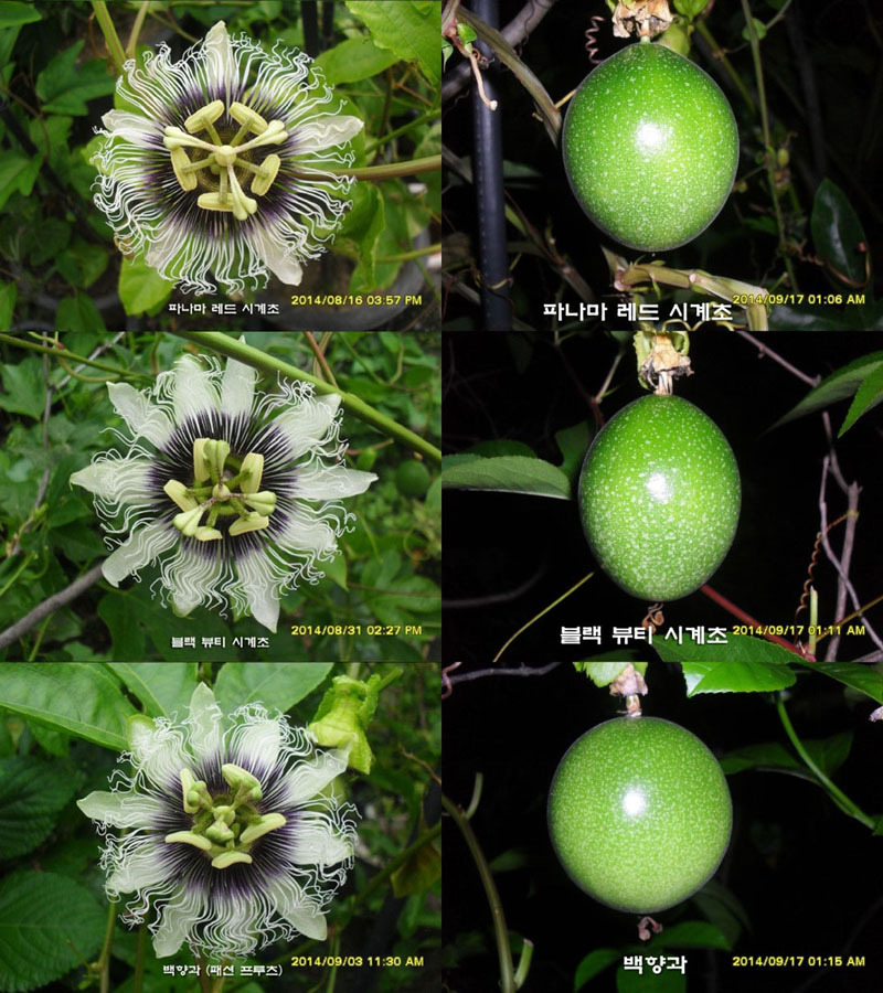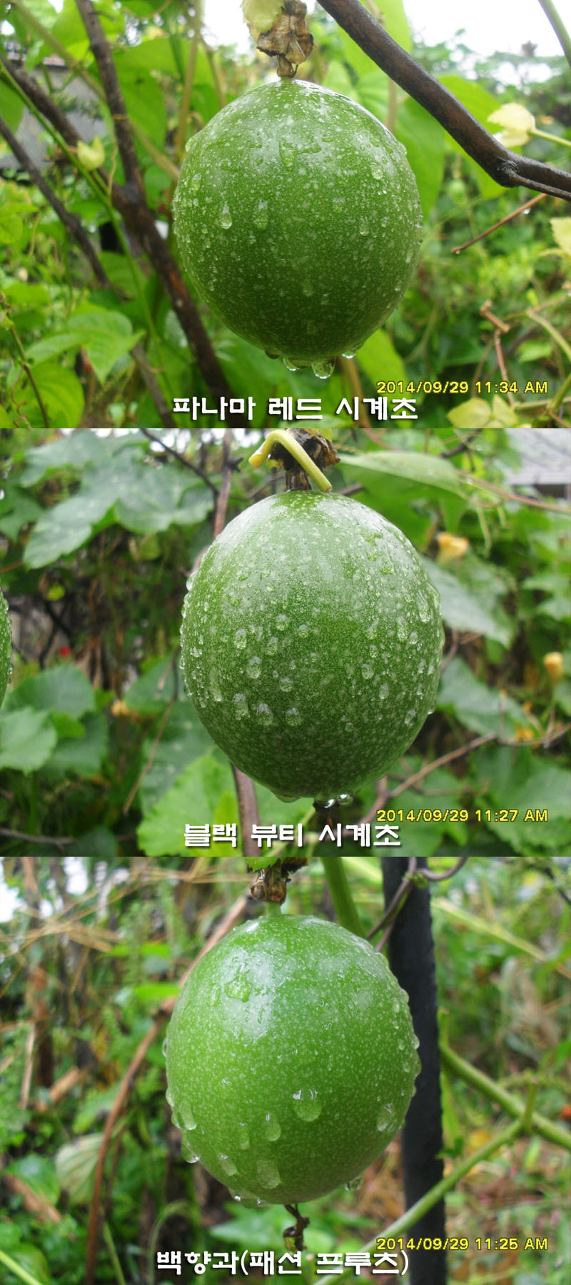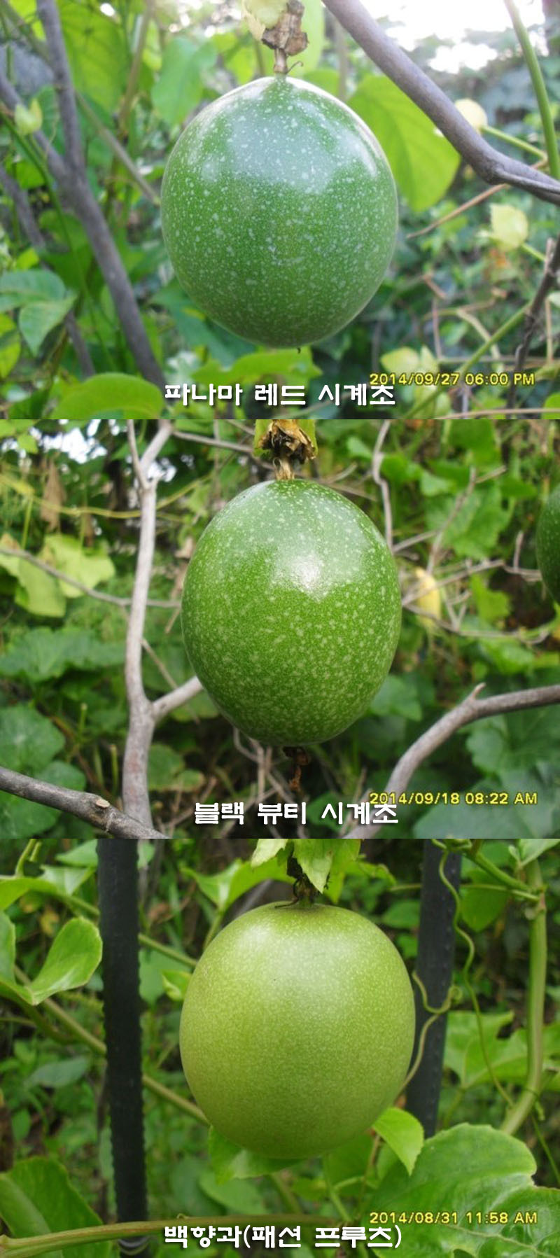 파나마 레드 시계초 및 백향과 (패션 프루츠)와 비교 사진