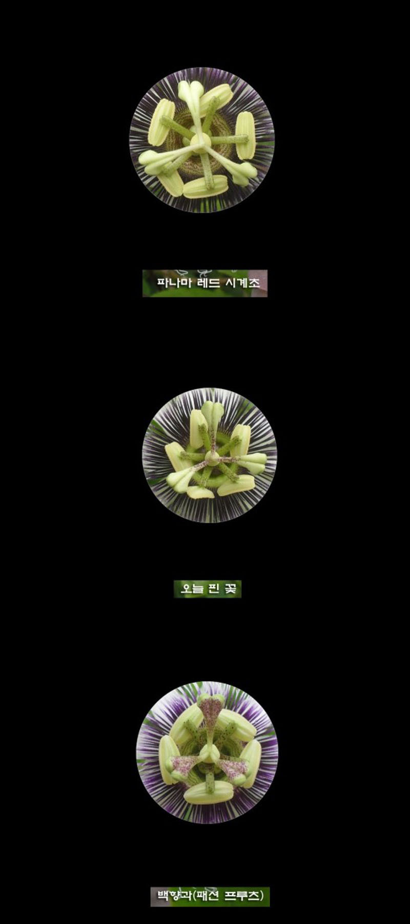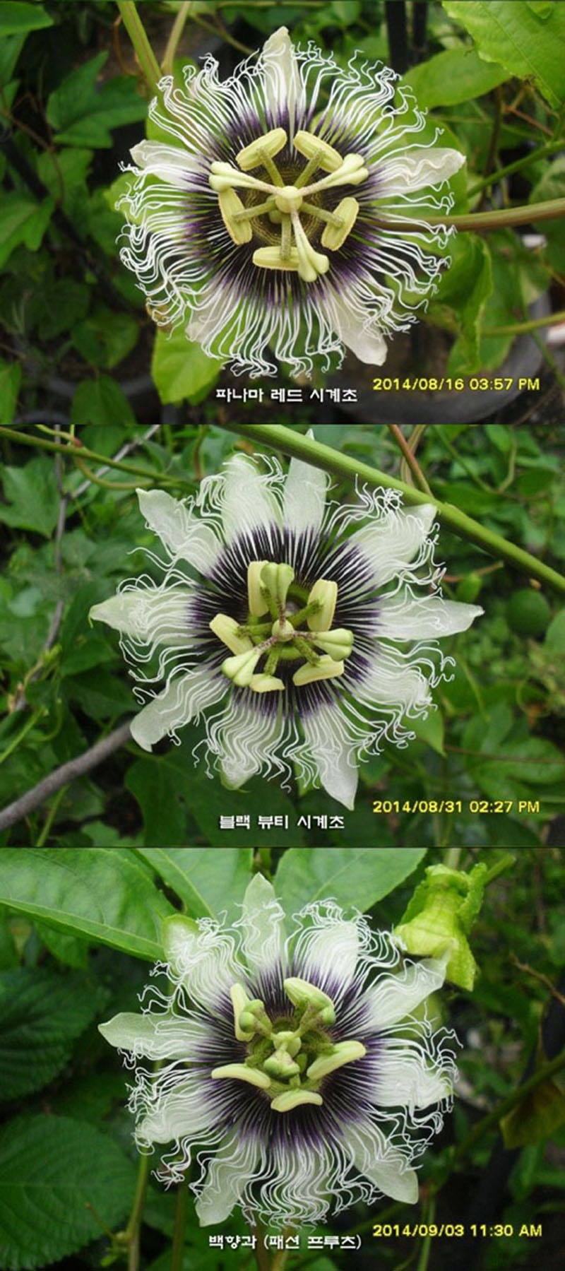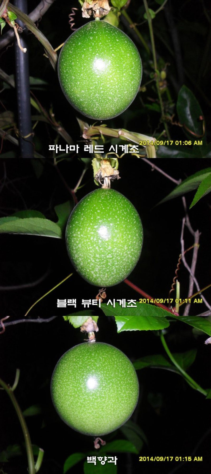 파나마 레드 시계초 및 백향과 (패션 프루츠)와 비교 사진