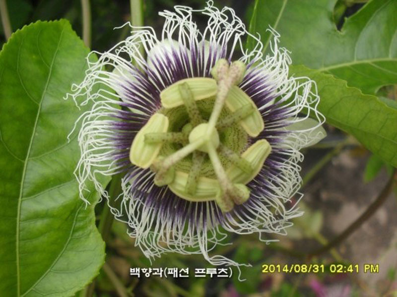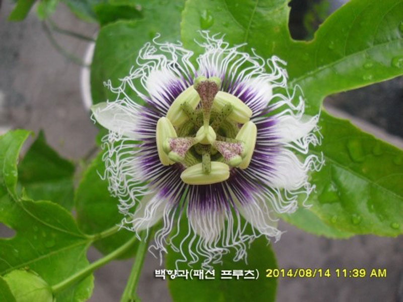 백향과 (패션 프루츠) - 꽃 중앙 부분에 3줄의 테두리선 약하게 있음.