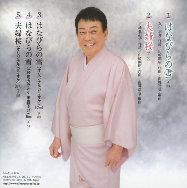 一、 羽織(はお)った角巻(かくまき) 寒(さむ)かろと 짧은 겉옷을 걸친 어깨걸이 추울거라고 雪をはらって 迎えてくれた 눈을 치우며 맞이해 주었어 しのぶ恋路の 雪明かり 그리워하는 연심 눈에 반사되는 빛 見せてあげたい このいのち 보여 드리고 싶어 이 생명 燃えてとけます はなびらの雪 불타오르고 녹습니다 꽃잎의 눈 二、 雪国・駒子と おなじ名で 설국, 코마코와 똑같은 이름으로 それがいいねと 愛してくれる 그것이 좋다고 사랑해 주네 逢うが別れの 初めとか 만나지만 이별이 처음라든가 ずるいおんなに なれるなら 교활한 여자가 된다면 なってあなたを あゝ縛(しば)りたい 되어서 당신을 아아 붙들어 매고 싶어 三、 袷(あわせ)の紬(つむぎ)に 染めの帯(おび) 겹옷의 명주에 염색의 허리띠를 ほどく手ぎわに みだれるこころ 푸는 솜씨에 흐트러지는 마음 雪がしんしん つもるほど 눈이 소복소복 쌓일쯤 白きうすもの 紅が差す 하얀 얇은 옷의 연지가 비치네 夢の散りぎわ はなびらの雪 꿈이 사라질 무렵 꽃잎의 눈