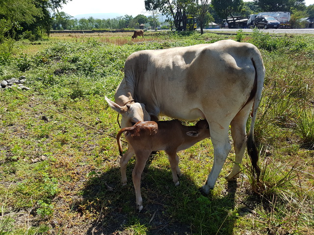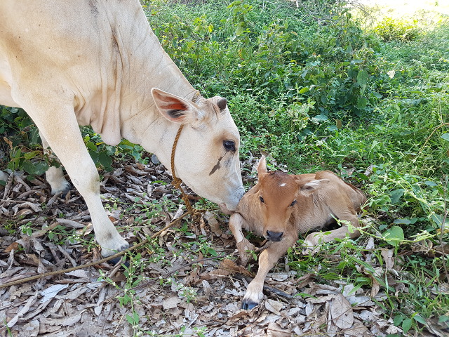 왜 그런가하고 밖을 내다보니 소가 송아지를 낳고 있다.