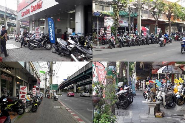 질서확립에 나서고 있는 방콕시에서는 파람3쪽 싸투쁘라딧도로가의 한 오토바이 판매점이