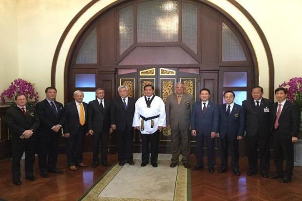 조정원 총재가 태국 태권도 협회 피몬 씨리위껀 회장과 함께 태국 정부의 부총리인