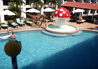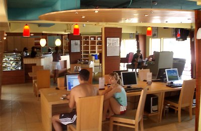 3) 그 외 식당이나 바는 ... 1층 메인수영장을 끼고 해변을 바라보고 위치한 식당으로 1층은 오전 조식당으로 오후엔 풀바로 활용되는 The Pool restaurant & Bar로, 2층은 라이브음악이나 공연을 볼수 있는 식당인 Joe Kool's restaurant이다. 그 외 미니마트와 같이 운영되는 케익 및 차를 마실수 있는 World news coffee에서는 인터넷을 사용할수 있으며 (15분 20바트), 그 외 미니마트 역할을 겸하고 있다.