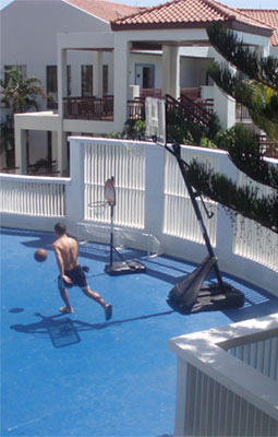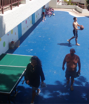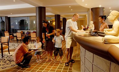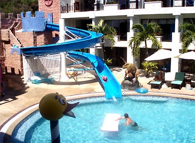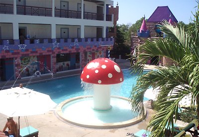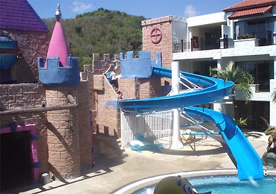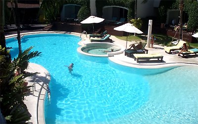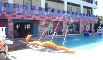 호텔내 부대시설로는 두개의 수영장, 4개의 식당, 휘트니스 클럽, 키즈클럽, 미니마트, 인터넷 카페등이 있다. 1) 수영장 ... 호텔 입구에 해당하는 립셉션에 위치한 어린이 풀장과 연결되어 만들어놓은 메인 수영장과 2층 키즈클럽 입구에 위치한 슬라이드가 있는 수영장이 있다.