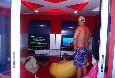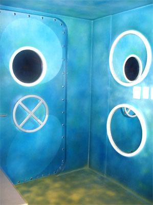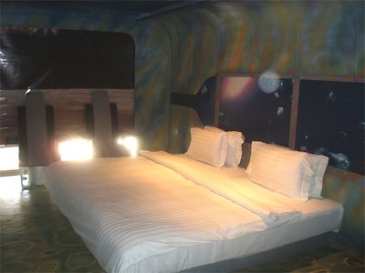 2) 어드밴쳐룸과 듀플랙스 어드밴쳐 룸 ... 이 객실은 테마룸으로 어드밴쳐룸은 우주선을 연상케 하는 Spacesship room과 잠수함을 연상케하는 Underwater room으로 나누어지며, 그 외 듀플랙스 어드밴쳐룸은 외국의 성(?-castle)시을 연상케 하는 복층구조의 룸으로 성인 2인+어린이 2인이 투숙이 가능하지만, 어드밴쳐 룸은 스탠다드를 개조한 객실이므로 최대 성인2+어린이1인 투숙이므로 성인 2인+어린이 2인 이상의 해당경우는 스탠다드 룸(더블베드) 객실과 커낵팅으로 되어있는 어드밴쳐 룸으로 해서 객실을 활용 할 수 있도록 되어있다.