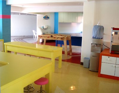입구에 비디오게임방, 영화방, 그리고 아이들이 공주놀이(?)를 할수 있게 만들어진 드레스, 볼풀장등등 그 외 실외 아이들 자전거나 탁구, 농구를 할수 있도록 실내와 실외로 나누어져 있으며, 클럽내 아이스크림이나 음료, 팝콘등을 무료로 가져다 먹을수 있다. (키즈클럽 이용요금 아래 참조)