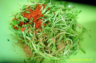 ▶ 재료 : 콩나물 1봉, 멸치액젓 2숟가락, 깨소금, 참기름 약간)