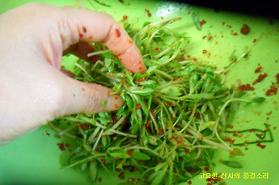▶ 재료 : 돌나물 150g 고춧가루 2숟가락, 멸치액젓 2숟가락, 식초 2숟가락, 깨소금 약간