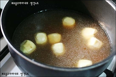 육수가 끓어오르면서 고구마가 반쯤 익었을때..