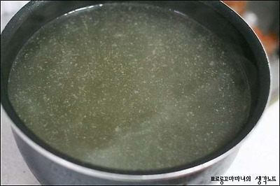 이부분만 떠서 버리면 기름기가 덜보여요...