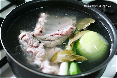 향신채소 : 대파, 양파, 통후추, 월계수잎 등 비린향을 없애줄 채소들..(전 여기에 후추가루 살짝, 참기름 살짝 넣어줘요. 그럼 향이 더 좋더라구요..캬아~)