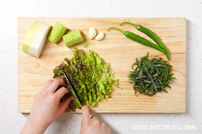 상추 10장, 깻잎 10장, 오이 ½개, 무 100g, 풋고추 2개, 마늘 2톨