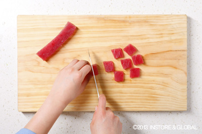4. 1의 참치를 2x1cm 크기로 썬 다음 키친타월로 덮어 냉장 보관한다.