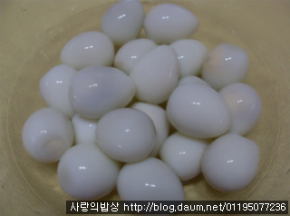 1. 메추리알은 끓는 물에 약간의 소금을 넣고 삶아내 껍질을 벗긴다.