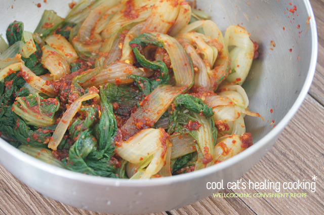 조물 조물 무쳐내 잠시 두어 간이 배게합니다..