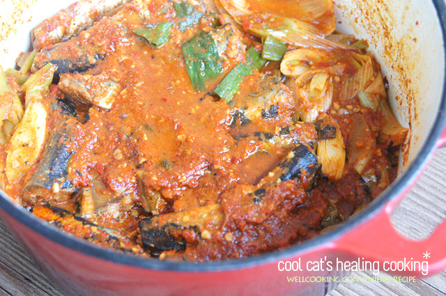 오늘은 요 시래기에 통조림 꽁치를 넣어서