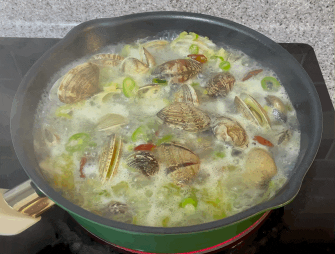 바지락이 입을 다 벌릴 때까지 팔팔 끓여주세요~