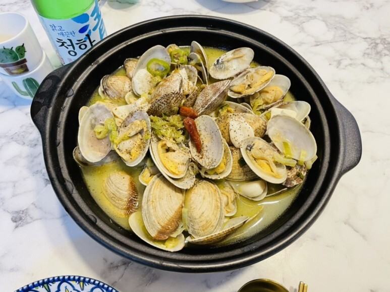 바지락만 끓여줘도 시원한데 청하(청주) 넣어서 비린 맛도 잡고