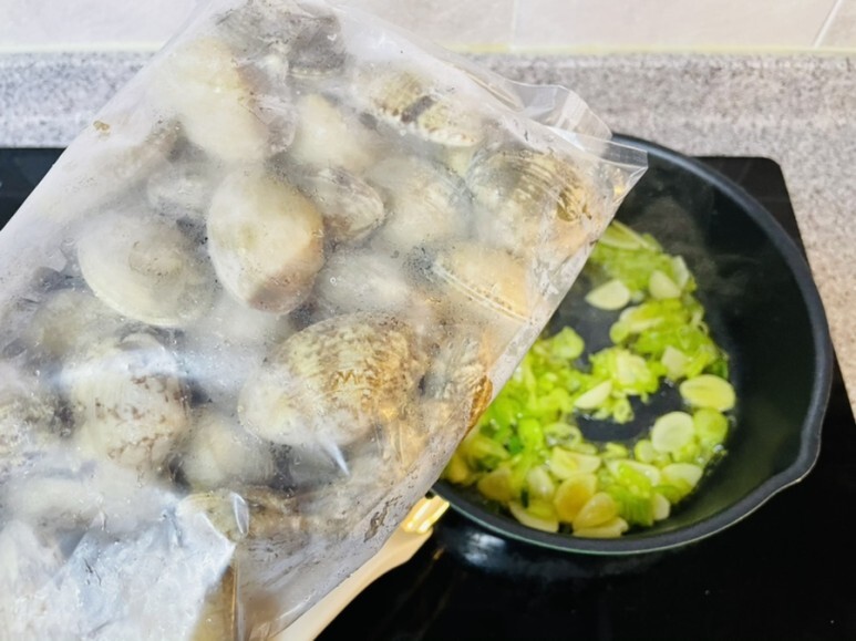 냉동한 바지락은 굳이 해동할 필요 없이 냥 바로 사용하면 된다고 해요!