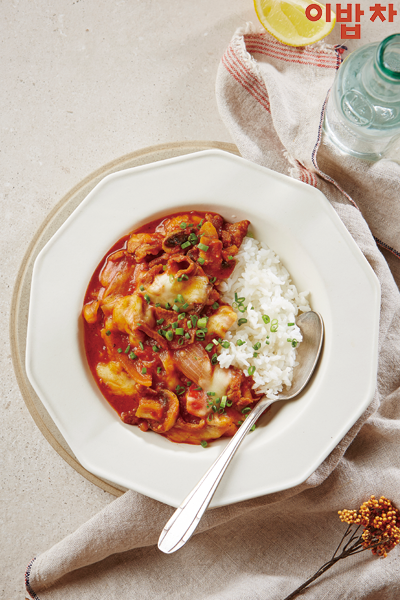 돼지고기(앞다릿살 200g), 토마토소스(1컵), 밥(1공기)