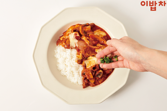 6. 그릇에 밥과 함께 담고 쪽파를 뿌려 마무리.