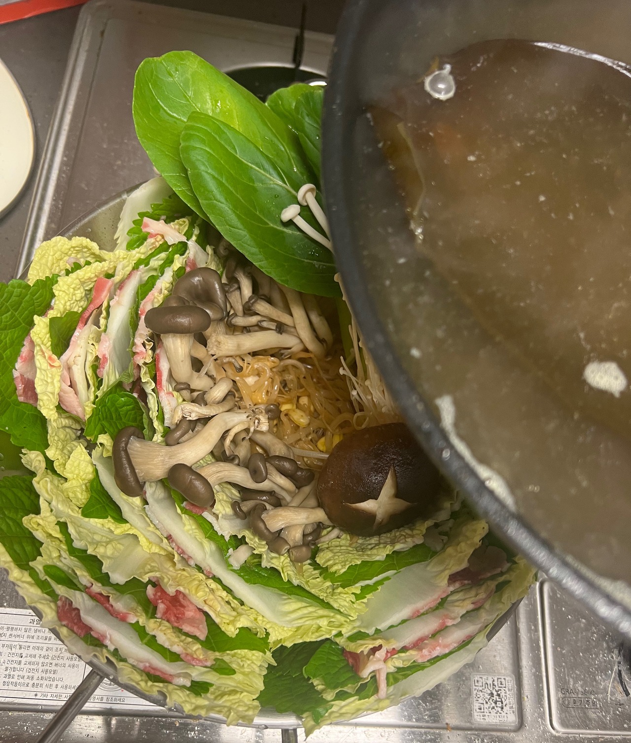 | 안녕하세요 오늘은 보기에도 예쁘고 맛도 좋은 밀푀유나베 만들어봤는데요 밀푀유가 번거 로워 보여도 생각보다 간편하니 배추와 소고기 있다면 따라 만들어보셔요 -육수재료- 물 1L (멸치육수팩 1개 ) 다시다 10g 다진 마늘 큐브 1개 액젓 2큰술 국간장 1큰술 -재료- 알배기배추 깻잎 샤부샤부용 고기 모둠버섯 1팩 청경채 숙주나물 -간장소스- 진간장 4큰술 레몬즙 또는 식초 1큰술 매실청 또는 유자청 1큰술 올리고당 1큰술 첫 번째, 물 1리터 넣고 끓기 시작하면 다시다 10g, 표고버섯, 액젓 2큰술, 국간장 1큰술, 다진 마늘큐브 1개 넣어주세요 (멸치육수팩 있다면 멸치육수팩을 넣어주셔도 좋아요) 두 번째, 알배기배추 위에 깻잎 두 장 깔고 샤부샤부고기를 올려주세요 이 과정을 네 다섯번정도 반복하여 쌓아 올려주세요 세 번째, 다섯 겹정도 쌓았다면 뒤집어준 후 네 등분으로 잘라주세요 네 번째, 겉면에서부터 겹겹이 쌓은 배추, 깻잎, 고기를 하나씩 깔아주고 가장자리에 숙주나물로 깔고 청경채, 모둠버섯을 넣어주세요 다섯 번째, 처음에 끓여두었던 육수를 넣어 고기와 채소가 익을 때까지 끓여주세요 간장 소스 만들기 진간장 4큰술 레몬즙 또는 식초 1큰술 매실청 또는 유자청 1큰술 올리고당 1큰술 다 끓었다면 간장소스에 찍어 드시면 술안주로도 좋고 간단하게 드시기도 너무 좋아요 다 드시고 남은 재료에 죽이나 볶음밥으로도 활용가능하니 드셔보시길 바라요 오늘도 긴 글 읽어주셔서 감사드리며 좋은 하루 보내세요 |