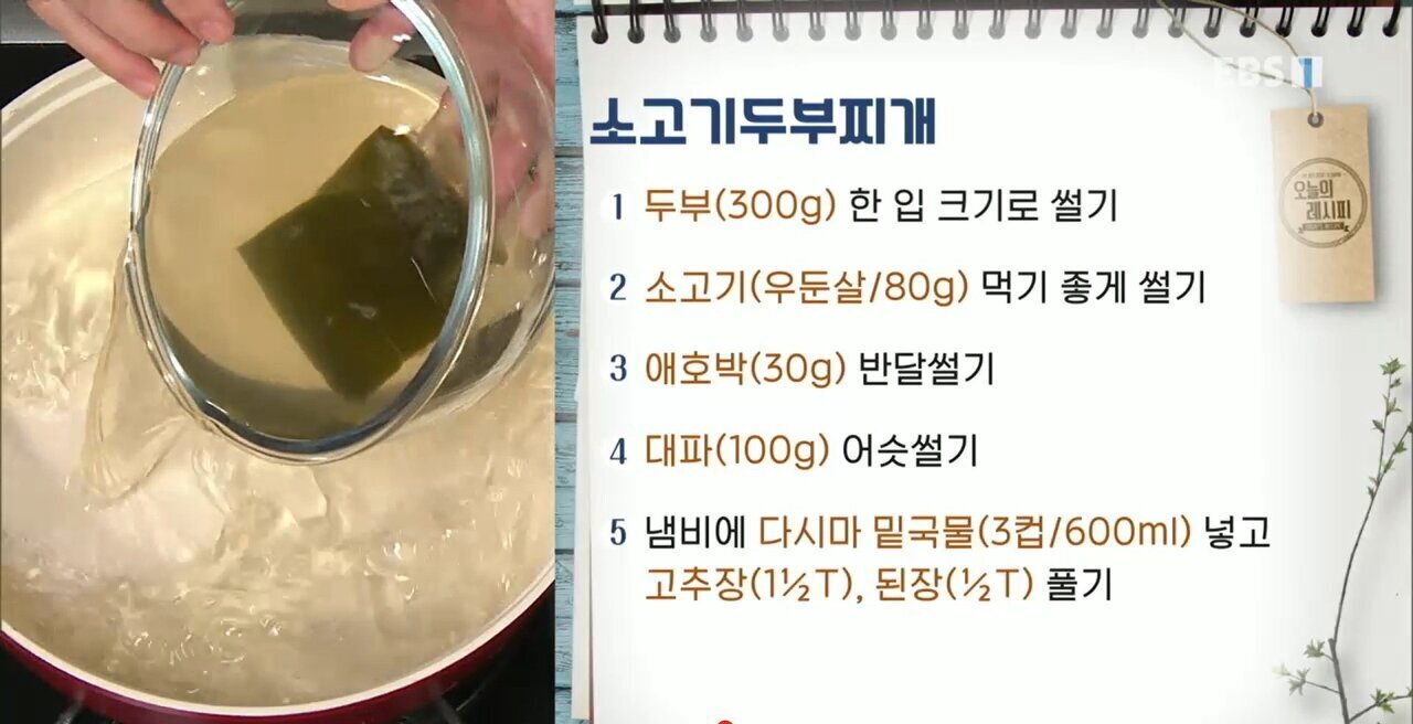 밥 한그릇 뚝딱!하는 소고기두부찌개 레시피를 소개합니다~