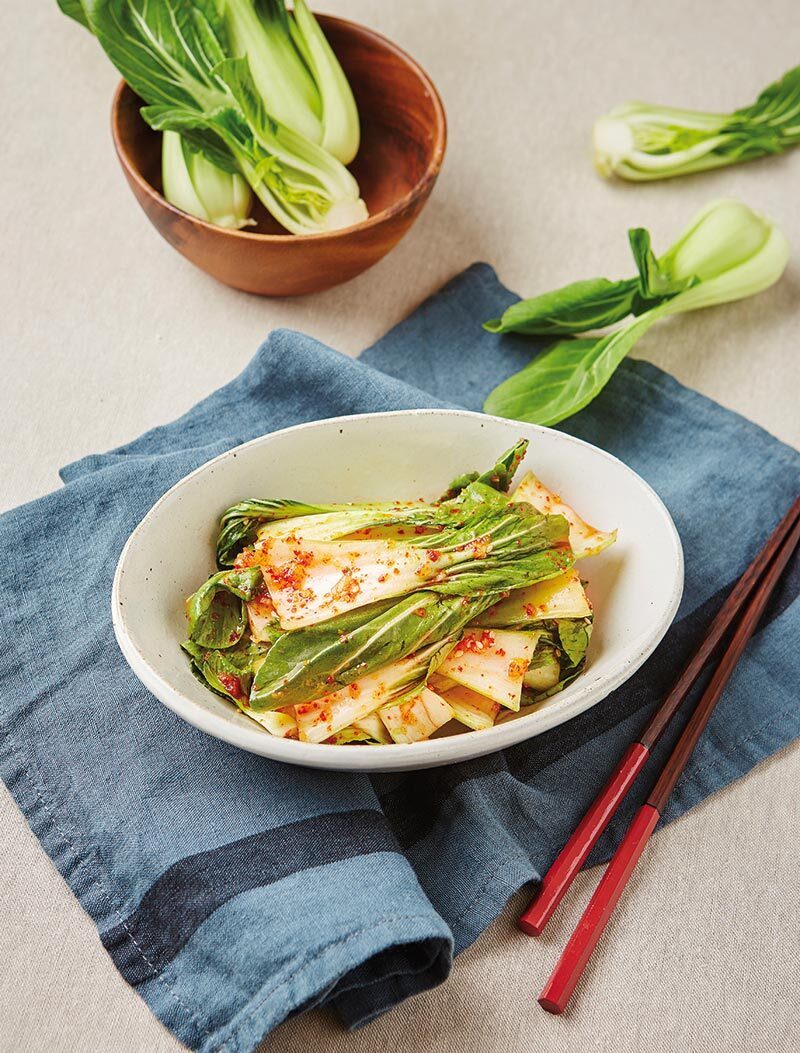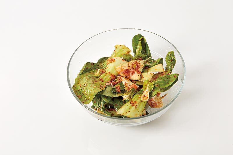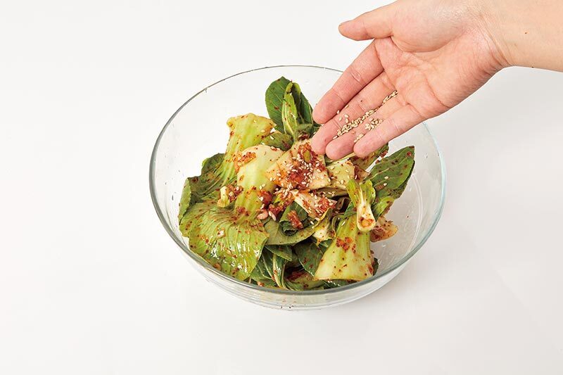 청경채겉절이 촉촉한 즉석김치 재료 청경채(1½줌=150g) 양념장 설탕(0.5)+고춧가루(1.5)+ 다진 마늘(0.5)+다진 파(0.5)+ 식초(1)+멸치액젓(1)+ 새우젓(0.3)+올리고당(0.5) 양념 참깨(약간)