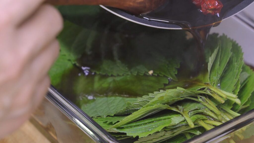 한번 만들어 놓으면 1년 가까이 맛있게 먹는 반찬 깻잎장아찌 만들기 입니다. 그래서 처음 만들 때 제대로 만들어 놓는 것이 중요한데요. 오늘은 양념장 황금 비율로 10배 더! 맛있는 깻잎장아찌 만드는 법을 알려드릴께요. 차근차근 따라하시면 누구나 맛있는 깻잎장아찌 레시피를 만들실 수 있을 거에요. 10배 더! 맛있는 깻잎장아찌 만들기 비법 크기 않은 깻잎 준비하기 깻잎장아찌 용 깻잎은 너무 크지 않은 것으로 준비하세요. 밥에 싸서 한입에 넣을 수 있는 크기가 제일 적당합니다. 너무 크면 먹기 힘들고 장아찌 용으로 적합하지 않답니다. 깻잎 식초로 세척하기 장아찌를 담그기 전 깻잎은 식초물에 2분 정도 담궈 놓으세요. 그리고 흐르는 물에 2번 정도 깨끗하게 헹궈줍니다. 이 과정을 거치고 나면 잔여 농약 걱정 없이 맛있게 드실 수 있어 좋아요. 손질하기 손질이 끝난 깻잎은 한장씩 차곡차곡 모으세요. 그리고 꼭지 부분은 일정한 길이로 맞춰 잘라 줍니다. 너무 길게 나와 있는 것 보다 서로 일정한 길이를 유지하면 먹기도 보기도 좋아요. 다시마 육수 사용하기 깻잎장아찌 양념장을 만들 땐 다시마육수를 사용하세요. 다시마육수 특유의 감칠맛과 깊은맛이 깻잎장아찌를 더욱 맛있게 만들어 줍니다. 육수가 없다면 해당 링크를 통해 다시마육수 레시피를 확인해 보세요! 건청양고추에 칼집 넣기 양념장에 넣을 건청양고추는 칼집을 넣으세요. 그래야 짧은 시간에 매운맛이 양념장에 스며들어 더욱 맛있게 드실 수 있어요. 만약 매운맛이 싫은 분들이라면 양을 조절하세요. 깻잎장아찌 유통기한 늘리는 보관법 깻잎장아찌 보관기간 늘리려면 양념장을 부은 후 3일이 지났을 때 양념장만 따로 빼서 끓이세요. 그리고 완전히 식힌 후 다시 깻잎장아찌에 부어 줍니다. 이 과정을 거치고 나면 유통기한이 늘어난 것을 보실 수 있을 거에요. 이렇게 하여 1년 이상 맛있게 잘 먹었답니다. 재료 안내 깻잎 80장, 양조간장 3/4컵, 국간장 1/4컵, 식초 1/3컵, 설탕 1/4컵, 매실청 1/4컵, 소주 1/2컵, 다시마육수 1 1/4컵, 마늘 10알, 건청양고추 3개 깻잎장아찌 만들기 1. 깻잎 80장을 준비하세요. 깻잎 물에 한번 씻고 식초물에 2분 정도 담궈 두세요. 이 과정을 거치면 잔여 농약 걱정 없이 맛있게 드실 수 있습니다. 2분이 지나면 흐르는 물에 2~3번 깨끗이 씻어 물기를 제거하세요. 2. 씻은 깻잎은 한장씩 잘 모으세요. 그리고 꼭지 부분을 일정한 길이로 잘라 놓습니다. 이렇게 하면 담궜을 때 더욱 보기도 좋도 먹기에도 편해요. 3. 마늘은 반으로 잘라 놓으세요. 건청양고추는 칼집을 넣어 줍니다. 칼집을 넣어 깻잎장아찌 양념장을 만들면 더욱 칼칼한 맛이 우러나와 맛있게 드실 수 있어요. 4. 양조간장 3/4컵, 국간장 1/4컵, 식초 1/3컵, 설탕 1/4컵, 매실청 1/4컵, 소주 1/2컵, 다시마육수 1 1/4컵, 마늘 10알, 건청양고추 3개를 냄비에 넣고 ‘강불’에서 끓이세요. 끓어 오르면 ‘중불’로 바꾸고 1~2분간 더 끓입니다. 중간에 끓어 넘칠 수 있어 주의하세요. 끓인 깻잎장아찌 양념장은 한김 식혀 놓으세요. 5. 깻잎을 서로 엇갈려 내열 용기에 넣어 두세요. 그리고 한김 식힌 양념장을 깻잎에 부어 줍니다. 20~30분 정도 양념장이 식을 때까지 기다리세요. 이후 뚜껑을 닫고 실온에서 하루 보관하세요. 그리고 냉장고에 넣어 보관합니다. 6. 깻잎장아찌 유통기한을 늘리려면 3일 뒤 양념장만 빼서 따로 끓이세요. 이후 완전히 식힌 후 다시 깻잎에 붓습니다. 그리고 뜨지 않게 누르고 냉장 보관하세요. 이 과정을 거치고 나면 깻잎장아찌 보관기간이 늘어나 1년 이상도 맛있게 먹을 수 있었답니다. 다시마 육수의 감칠맛 깊은맛이 더해지고, 청양고추의 칼칼함이 올라와 정말 맛있게 먹을 수 있는 깻잎장아찌 만들기 입니다. |