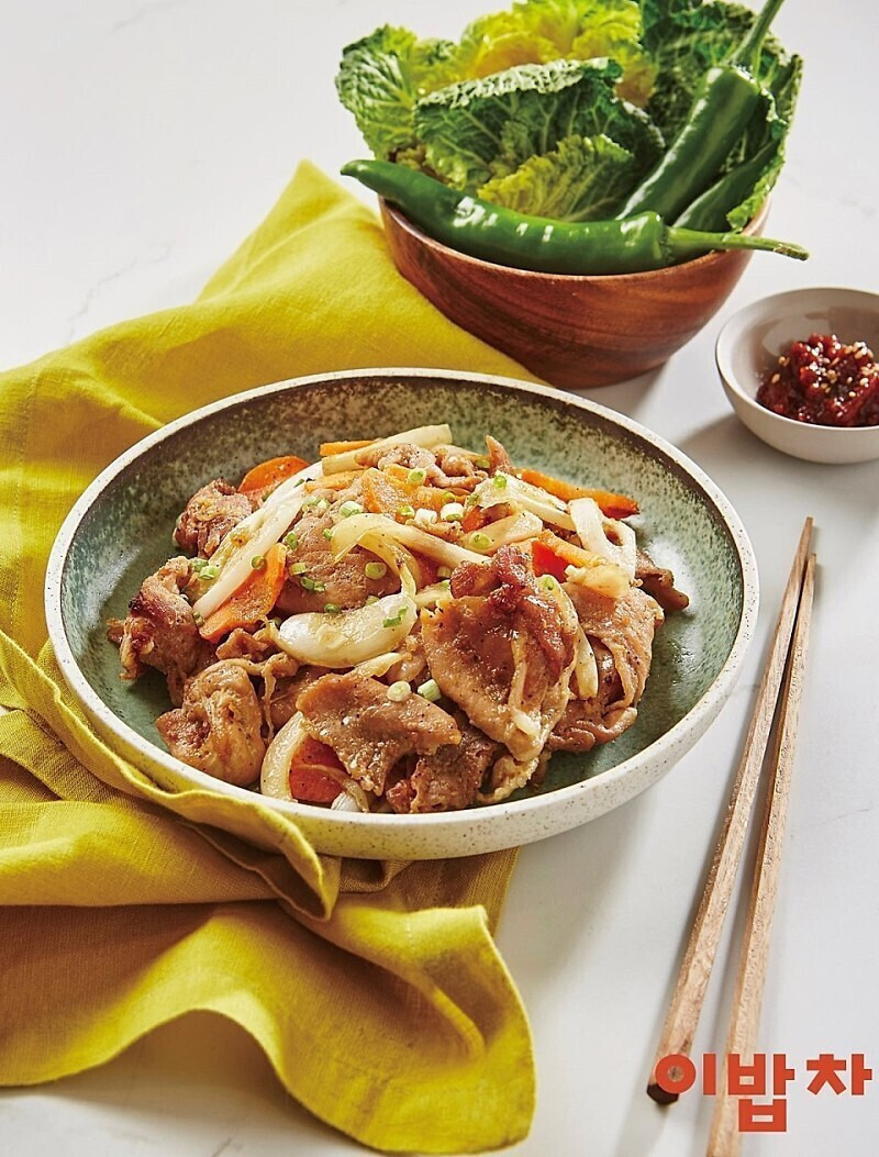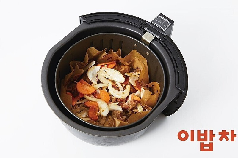 | 에어프라이어로 간장 제육볶음 우리 집 베스트 메뉴를 에어프라이어에 넣는다면 어떨까요? 퍽퍽해질까~ 양념이 탈까~ 걱정됐지만, 만능 에어프라이어라면 그런 걱정 필요없어요. 불맛은 굴소스로 확 잡았고요~ 구울 때는 반드시 고기 → 채소 순서로 넣어주세요. 그래야 고기는 육즙을 머금어 촉촉하고, 채소의 아삭함도 온전히 살릴 수 있답니다. 덮밥으로 즐기면 한 그릇 뚝딱! 다른 반찬이 필요 없어요~ <2인분> 필수 재료 돼지고기(앞다릿살 500g), 양파(½개), 당근(¼개) 양념장 설탕(2)+맛술(2)+간장(4)+다진 마늘(2)+굴소스(2)+후춧가루(0.5) 1. 양념장을 만들고, 2. 돼지고기는 양념장에 버무려 10분간 재우고, 3. 양파는 채 썰고, 당근은 반달 모양으로 납작 썰고, 4. 에어프라이어에 종이포일을 깐 뒤 양념한 돼지고기를 넣어 200℃에서 10분간 굽고, >>Tip 종이포일을 깔면 양념이 빠지지 않아 촉촉해져요. 5. 양파와 당근을 넣고 5분간 더 구워 마무리. |
