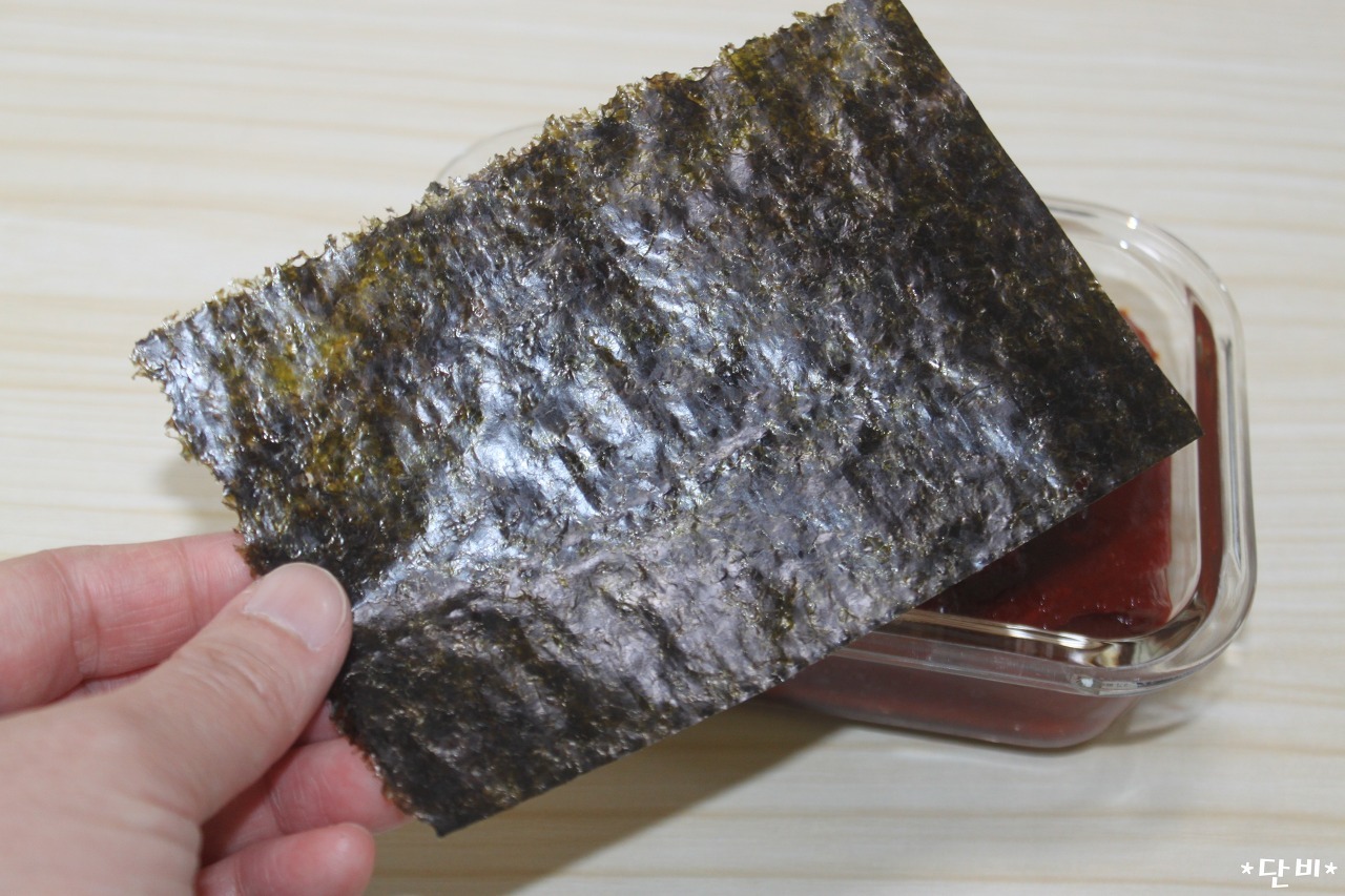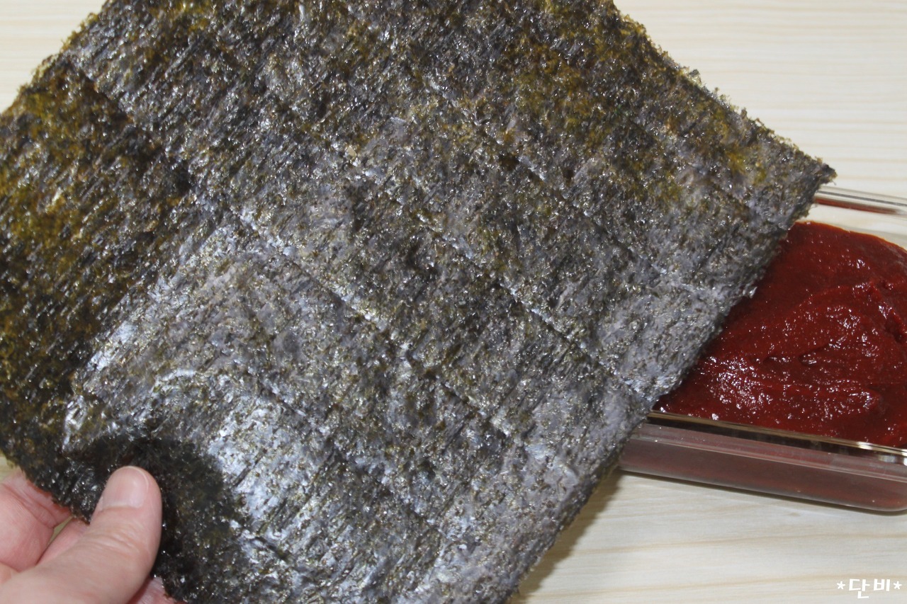 김을 밀착시켜 붙여 주세요.
