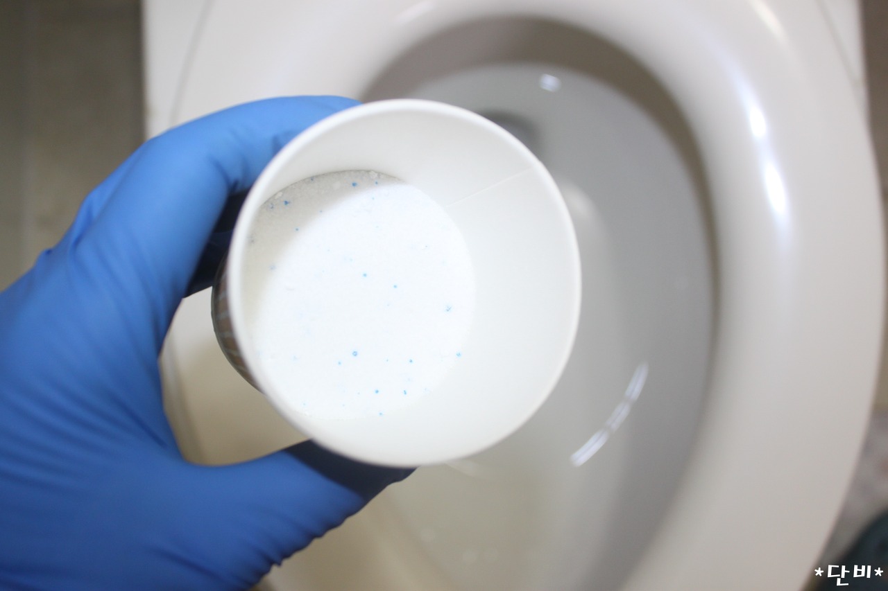 | 세탁세제 아직도 빨래할 때만?! 여기 넣으면 깜짝 놀랄걸~ 세탁세제는 보통 빨래할 때만 사용하실 텐데요. 세탁세제에는 계면활성제라는 성분이 들어 있어요. 바로 이 성분이 오염된 빨래를 할 때 외에도 변기의 석회질이나 소변때 제거에 매우 탁월한 효과가 있다고 해요. 변기 청소할 때 많은 분들이 락스나 변기 세정제를 사용하곤 하실 텐데요. 이제부터는 세탁세제를 사용해 보세요. 세탁세제의 계면활성제 성분이 변기 속 먼지와 침전물을 용해시켜 줘 청소가 매우 용이하게 만들어 준답니다. 물을 한 차례 미리 내린 변기에, 세탁세제 1/2컵을 뿌려 주세요. (종이컵 기준) 미리 물을 한차례 내린 후 세탁세제를 뿌려주면, 변기 안쪽으로 세탁세제가 축축한 상태로 더 잘 달라붙게 만들어줘요. 자 이 상태로 변기 뚜껑을 닫고 약 15~20분 정도 기다려 주세요. 이는 변기 속 묵은 때를 녹이기 위해 필요한 시간이에요. 뚜껑을 열고 변기 안을 솔로 박박 문질러 깨끗하게 닦아주세요. 특히, 변기 모서리와 가장자리를 구석구석 꼼꼼하게 닦아 주세요. 그러고 나서 물을 내려 주시면 돼요. 세제와 함께 변기에 묻어 있던 때들이 시원하게 내려가요. 세탁세제로 변기 안 때들이 얼마나 닦일까 했는데 기대 이상으로 잘 닦이는 거 있죠? 변기 내부가 너무 깨끗하고 반짝거려 감탄했어요. 여러분도 변기 청소할 때 세탁세제를 넣어 보세요! 그동안 몰랐던 세탁세제의 세정력에 깜짝 놀라실 거예요. |