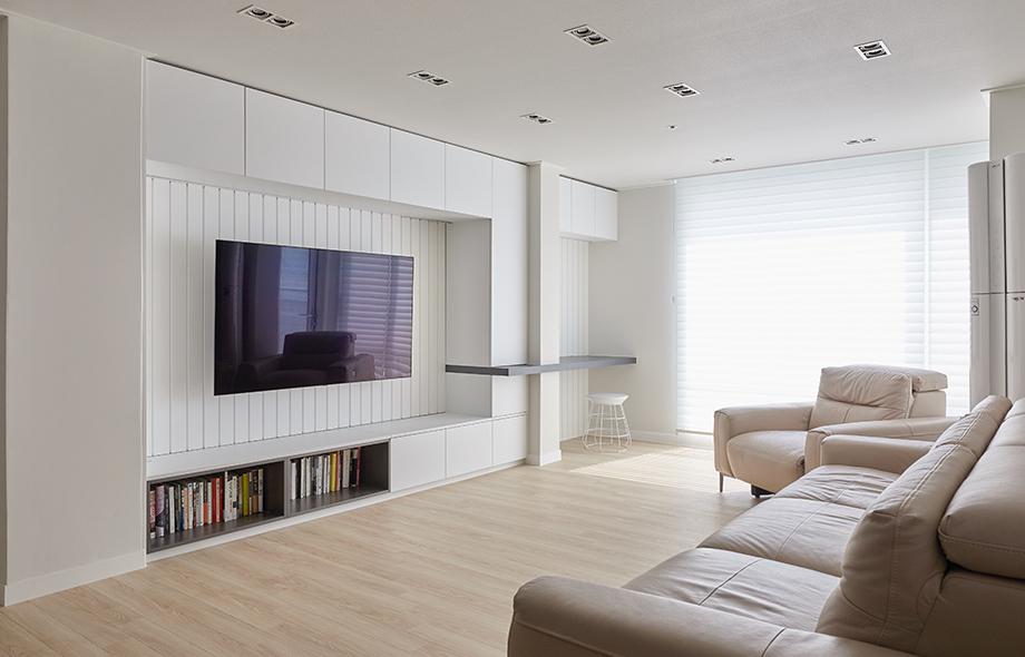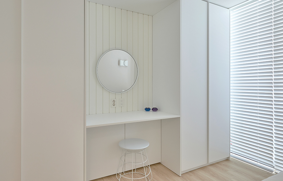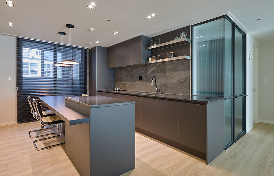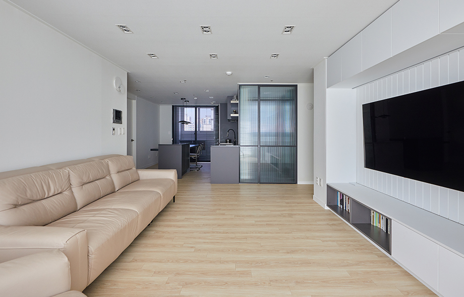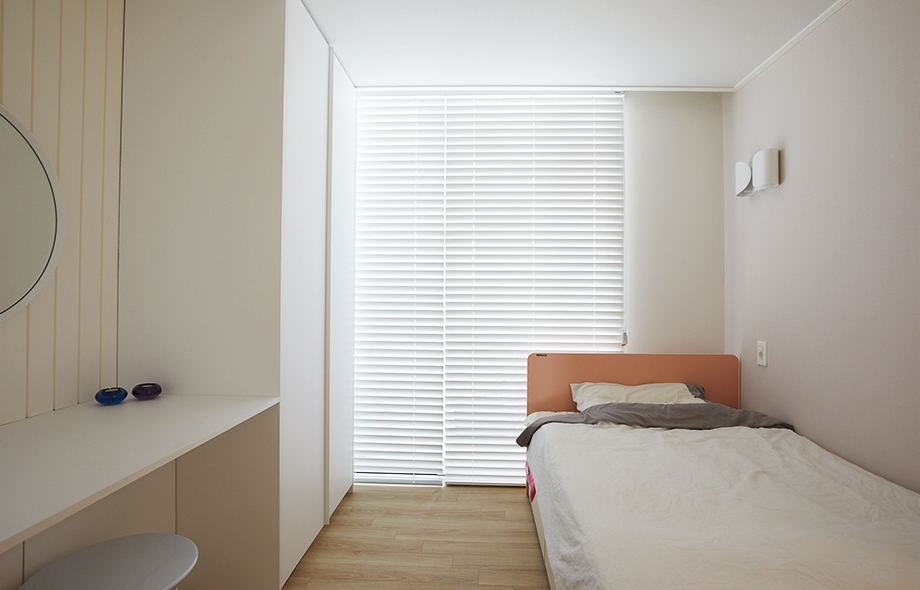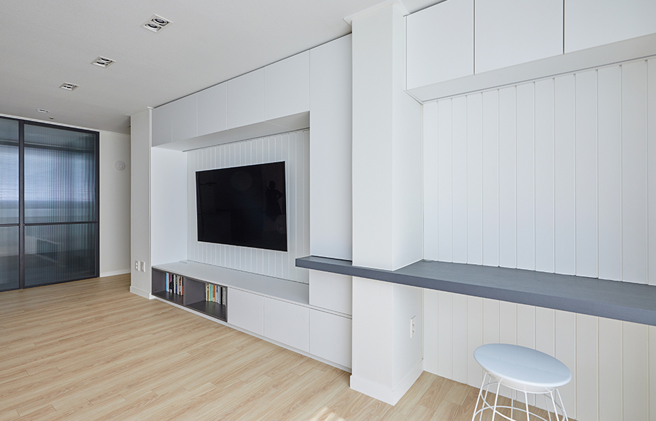 가족과 함께하는 공간은 어떤 식으로 인테리어 하는 것이 좋을까요? 인테리어는 사는 사람의 삶이 반영되기 마련이죠. 1인 가구가 아닌 이상 다양한 가족 구성원에게 따른 배치와 디자인이 필요합니다. 여기 각 공간을 사용하는 사람의 취향에 맞춰 컬러로 공간을 나눠주는 아이디어가 있습니다. 공간을 대표하는 컬러로 꾸며 새롭게 바뀐 중 고등생 자녀와 부부를 위한 34평 아파트를 소개합니다. 시공 내역 현관 원도어 모루 유리 중문, 타일 시공 거실 실크 도배, 강마루 시공 월플렉스 시공 주방 기존 싱크대 철거, 제작 가구 방 아이방 가벽 시공, 붙박이장 도어, 손잡이 교체 및 필름 리폼 제작 가구 욕실 부부욕실 우드타일 시공 가벽 시공 그레이 컬러로 시크해진 현관 ▲시공전 ▲시공후 이 집의 특징은 현관 전실이 있다는 점인데요. 전실과 현관을 연결하여 실용적이고 모던하게 꾸몄습니다. 또한 세로 물결의 무늬가 특징인 모루 유리 중문을 사용하였습니다. 그레이 톤의 타일과 빈티지 느낌의 중문이 현관의 분위기를 더욱 시크하게 만들어 주었습니다. 월플렉스와 작은 서재로 꾸민 다용도 거실 ▲시공전 오래된 건물들의 특징인 노란장판과 몰딩은 세월의 흔적이 보입니다. ▲시공후 소파는 소프트한 브라운 컬러로 배치하여 더욱 아늑하게 연출했습니다. 이집의 중심이 되는 거실공간은 채광이 가장 먼저 눈에 띄는데요. 따스한 햇볕이 잘 들어오는 화사한 공간으로 재탄생 했습니다. 거실은 수납력을 높이면서 깔끔하게 보일 수 있도록 월플렉스를 시공했습니다. 화이트 월플렉스와 거실 벽을 사이로 책상을 연결하여 이어진 듯, 분리된 공간으로 활용도를 높였습니다. 고급스러운 소통공간으로 바뀐 주방겸 홈바 ▲시공전 시공전 주방은 붉은 우드톤의 평범한 주방 인테리어였습니다. ▲시공후 현관에서 바로 보이는 주방은 톤 앤 매너를 맞출 수 있도록 현관과 비슷한 톤의 컬러로 시공했습니다. 중문 또한 ‘ㄱ’자로 연결하여 활용도를 높여 주었습니다. 주방의 컬러는 과감하게 블랙를 주로 사용하고 스테인리스, 그리고 포인트로 의자에는 우드 3가지 컬러를 사용하여 믹스매치 하여 고급스럽고 차분한 색다른 느낌으로 조화롭게 연출했습니다. 아이별 특성에 맞게 연출한 톡톡 튀는 아이들의 공간 ▲시공전 넓은 공간이지만 철 지난 벽지와 몰딩으로 좁아 보이는 공간이었습니다. ▲시공후 아이들의 방은 특색과 아이들의 취향 맞게 컬러 와 전체적인 구조를 여러번의 디자인 수정을 통해 완성되었습니다. 중3 아들의 공부방 겸 침실공간으로 연출된 이 곳은 깔끔한 화이트와 차분한 블루 투톤으로 연출했습니다. 블루 컬러의 벽지를 포인트로 사용하여 안정감을 주고 집중력을 향상시키기 위해 침대와 책상을 가벽으로 공간 구분하여 실용적으로 연출했습니다. 기존 붙박이장은 도어 교체 및 필름 리폼으로 깔끔하게 연출했습니다. 길게 이어지는 선반형 책상으로 공간을 나누어 집중 할 수 있는 공간으로 재탄생했습니다. 또한 부족한 수납공간에는 제작가구를 넣어 보완하였습니다. 딸아이의 방은 군더더기 없는 심플한 화이트 가구로만 꾸며졌는데요. 수납공간을 확보하기위해 붙박이장을 설치했습니다. 그리고 해가 드리우는 창에는 화이트 블라인드를 설치해 따스한 햇살이 방안에 스며들 수 있도록 했습니다. 또한 책상 겸 화장대를 두어 실용적인 공간으로 연출했습니다. 각기 다른 무드로 연출해 본 욕실 ▲시공전 ▲시공후 부부욕실은 우드의 질감과 내추럴한 컬러를 갖고 있는 우드 타일을 사용하여 포근한 분위기를 살린 욕실공간으로 재탄생 하였습니다. 거실욕실은 전체적인 인테리어의 컨셉인 시크한 블랙 컬러에 맞추어 시공했습니다. 쿨한 색감의 그레이 타일과 블랙의 조합으로 시크한 느낌으로 연출했습니다. 욕실 수납장은 컨셉에 맞는 직사각형 모양의 수납장을 넣어 모던함을 살렸습니다. 글: 집데코 사진: 퍼스트애비뉴 |