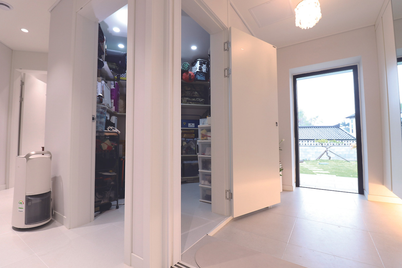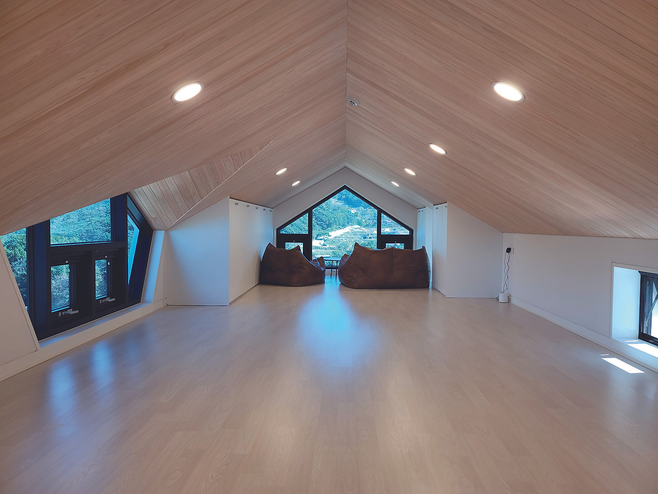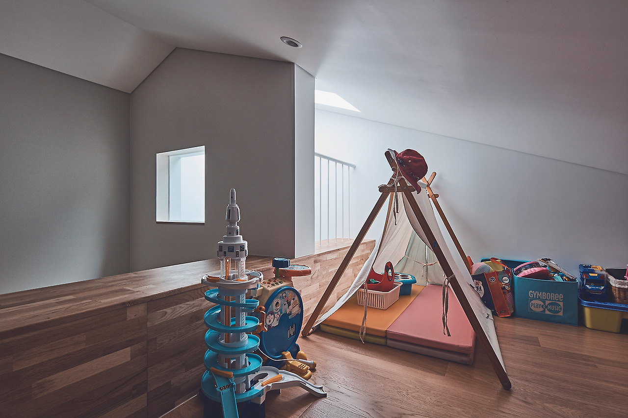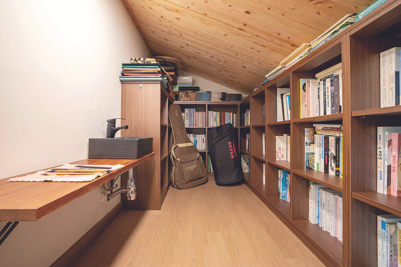 자투리 공간은 왜 생기며 어떻게 활용해야하나 전원주택은 자연 속에서 넓고 쾌적한 실내 공간을 자랑하나, 소위 ‘자투리 공간’이라 불리는 작은 빈 공간들이 생기게 마련이다. 하지만 이러한 자투리 공간 을 효과적으로 활용하면 집의 활용도를 높이고 생활의 질을 향상 시킬 수 있다. 이번 호 특집 P a r t 1에서는 전원주택의 실내 자투리 공간이 생기는 원인을 알아보고, 슬기롭고 창의적인 활용 방법을 소개한다. 글 이형우 기자 | 자료 전원주택라이프 DB 전원주택을 꿈꾸며 집을 짓고 나면 어느새 애매하게 남는 공간들이 생기게 된다. 원인은 다양하다. 비대칭 설계와 지형적 특성, 달라진 라이프 스타일, 그리고 건축 규제와 기능적 분할 등에 의해 자투리 공간이 발생하게 된다. 문제는 이러한 자투리 공간을 어떻게 활용하느냐에 따라 주택의 기능과 매력이 크게 달라진다는 점이다. 이에 자투리 공간이 생기는 원인과 이를 효과적으 로 활용하는 방법을 더 구체적으로 알아본다. 다용도실은 데드스페이스를 줄이기 위해 용도를 명확히 해두는 편이 좋다 지하 공간에 조성한 운동실 중문 옆에 창고 겸 팬트리로 활용하고 있는 다용도실(충주 교현동 주택) 공간이 분할되는 부분은 자투리 공간이 생기기 쉽다. 하지만 창의적 아이디어를 적용하면 효율적인 공간 활용이 가능해진다. 공간이 분할되는 부분은 자투리 공간이 생기기 쉽다. 하지만 창의적 아이디어를 적용하면 효율적인 공간 활용이 가능해진다. 자투리 공간이 생기는 원인 전원주택은 독특한 디자인과 자연 환경을 최대한 반영해 지어진다. 이 과정에서 비대칭적인 구조나 경사진 지형 등으로 인해 자투리 공간이 생긴다. 특히, 주택 형태가 비정형일 때 자투리 공간이 발생하기 쉽다. 외관 을 통해 독 특한 인상을 줄 수 있겠지만 대부분이 사각 형태로 제작된 가구들을 배치하다 보면 자연스럽게 남는 공간이 생기게 마련이다. 공간과 공간이 연계되거나 분할되는 부분은 더욱 생기기 쉬우므로 각별한 주의를 요한다. 독특한 주택 외관은 매력적이지만 내부 공간 활용에는 제약을 줄 수 있다. 최근에는 라이프 스타일에 따라 각 공간의 쓰임새가 달라지면서 자투리 공간이 발생하기도 한다. 일반적으로 주택에서 메인 공간은 거실·주방·식당·침실 등이며, 복도·다용도실·다락·지하실 등은 서브 공간으로 분류된다. 메인 공간은 라이프 스타일 변화에 둔감한 반면, 서브 공간은 순 응적이다. 예컨대 지하실은 보유 차량이 줄어듦에 따라, 다락은 아이들이 성장함에 따라, 다 용도실은 초기 계획과 다른 용도 로 사 용함 에 따라 자투리 공간 이 생길 수 있다. 건축 규제도 자 투리 공간 발생 원인이 된다. 지역 건축 규제나 법규에 따 라 주택의 위치나 구조가 제한되면 계획하지 않은 공간 이 남게 된다. 복도에 테이블과 의자를 놓고 독서나 티타임 코너로 꾸며보거나, 복도 및 계단을 서가로 활용하는 것도 좋은 아이디어다. 실내 자투리 공간, 어떻게 활용 해야하나 자투리 공간을 활용한 맞춤형 수납장은 매우 유용하다. 창고로 사 용하거나 계절용 품, 정리함 등을 보관하는 장소로 만들 수 있다. 벽면에 선반을 설치하거나 맞춤형 가구를 배치해 실용성을 높일 수 있다. 예컨대 충주 교현동 전원주택의 경우 중문 옆에 창고 겸 팬트리로 활용하는 다용도실을 별도로 만들어 정원용품 공구류, 캠핑 장비 등을 수납하는 공간으로 활용하고 있다. 게다가 이중 도어를 만들어 현관과 거실에서 각각 출입할 수 있도록 공간을 구성했다. 다락과 복도 등에 작은 의자와 테이블을 놓고 독서공간이나 티타임을 즐길 수 있는 코너로 꾸며보는 것도 좋은 아이디어다. 햇빛이 잘 드는 창가라면 더욱 좋다. 자투리 공간을 아늑한 휴식 공간으로 변신시키면 집안의 분 위기도 한 층 부드러워지게 된다. 자투리 공간을 개인의 취미나 창작 활동을 위한 공간으로 활용할 수도 있다. 예술적인 감각을 더해 벽화를 그리거나, 조각품을 설치해 미니 갤러리로 만 들 수도 있다. 취미를 반영한 물건들을 모아두는 전시공간으로 활용해도 좋다. 특히, 빈 벽을 활용해 그림이나 포스터를 붙여 공간을 활기차게 연출할 수 있으며, 빔 스크린을 설치해 상황에 따라 다양하게 활용할 수도 있다. 화분이나 조명과 같은 소품으로 공간을 꾸밀 수도 있다. 반듯한 네모 형태의 레이아웃이 많은 공간에서는 활용이 쉽지 않은 코너가 생기게 된다. 이러한 코너뿐만 아니라 창틀과 선반 등 공간에 맞는 다양한 크기의 식물과 화분을 두면 공간에 생기와 활력을 더해줄 수 있다. 강아지나 고양이 등 반려동 물 을 키우 는 경우에는 자투리 공간을 활용해 통로나 휴식처를 마련해줄 수 있다. 작은 공간이라도 반려동물이 편안하게 지낼 수 있는 장소로 꾸며주면 가족 모두가 행복해질 수 있다. 복도에 테이블과 의자를 놓고 독서나 티타임 코너로 꾸며보거나, 복도 및 계단을 서가로 활용하는 것도 좋은 아이디어다. 최근에는 자투리 공간을 활용해 반려동물의 통로나 휴식처를 마련해주는 건축주들이 많아지고 있다. 비움과 채움, 명확한 목적 설정이 중요 전문가 들은 공간 활용의 기본 원칙으로 