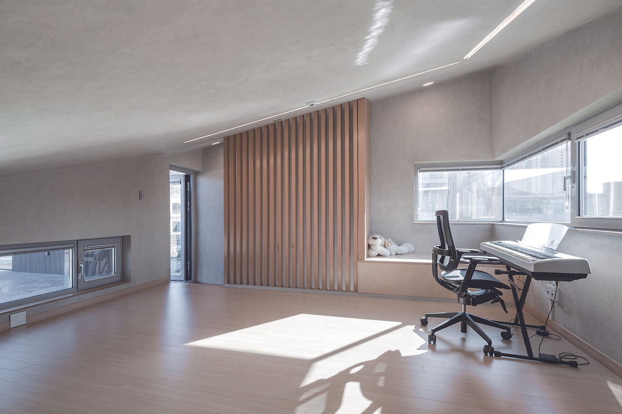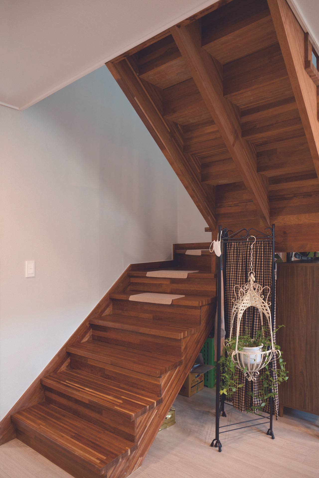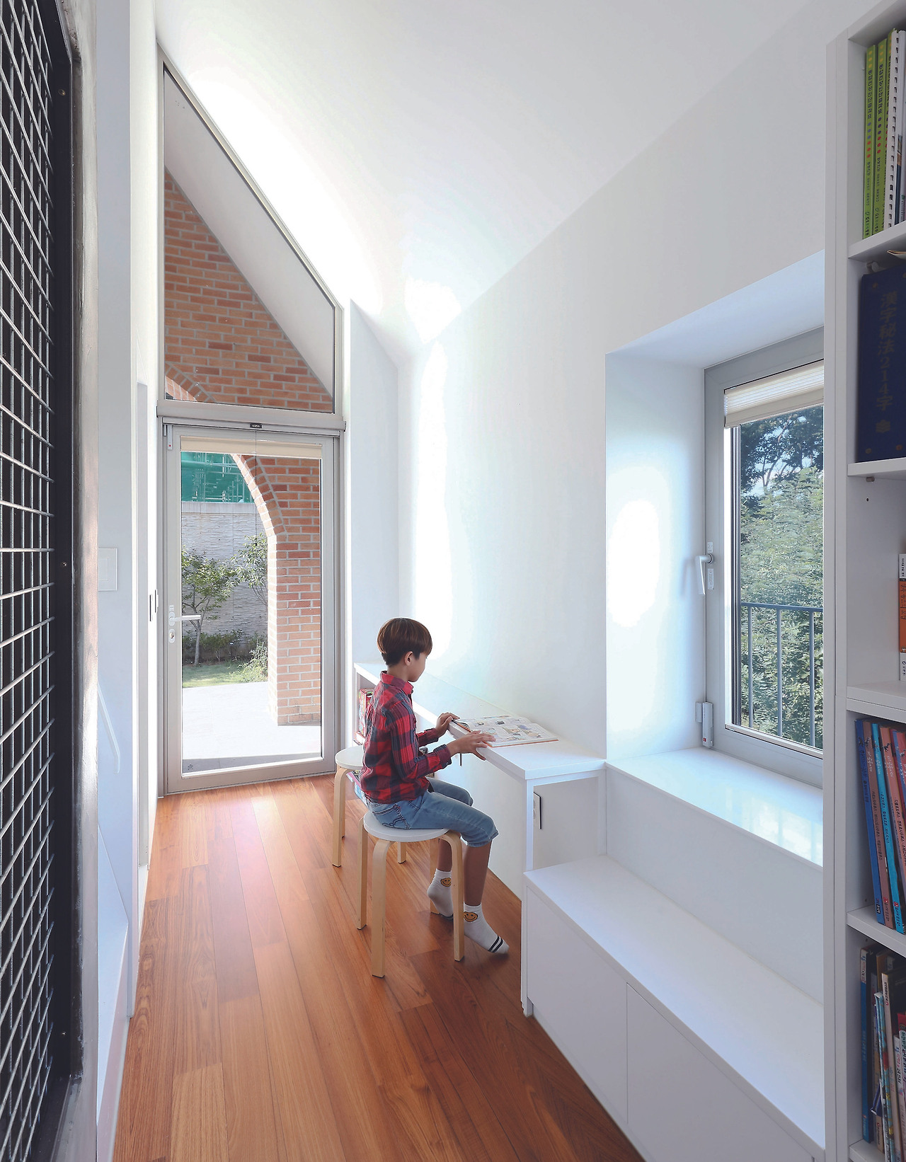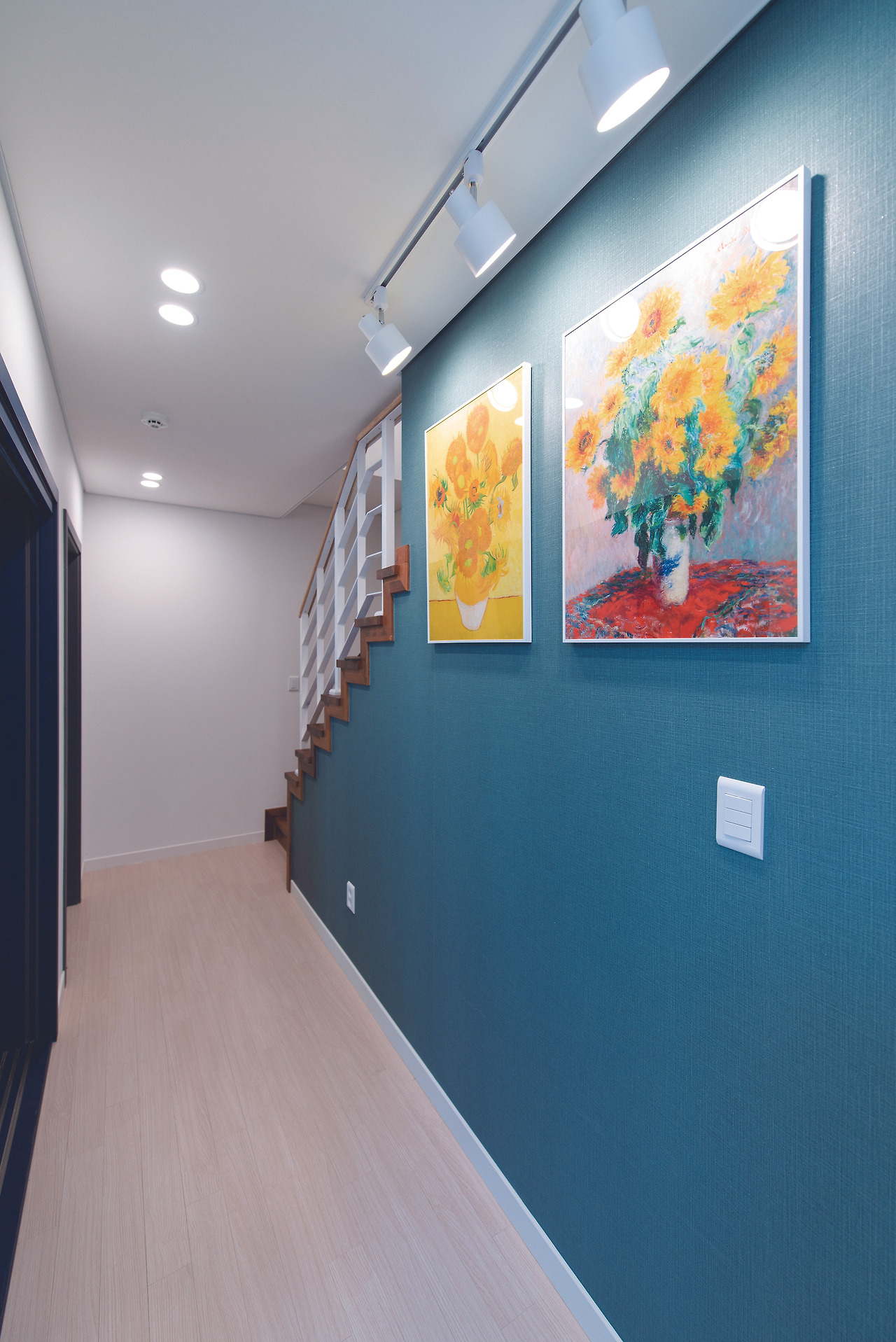 자투리 공간은 왜 생기며 어떻게 활용해야하나 전원주택은 자연 속에서 넓고 쾌적한 실내 공간을 자랑하나, 소위 ‘자투리 공간’이라 불리는 작은 빈 공간들이 생기게 마련이다. 하지만 이러한 자투리 공간 을 효과적으로 활용하면 집의 활용도를 높이고 생활의 질을 향상 시킬 수 있다. 이번 호 특집 P a r t 1에서는 전원주택의 실내 자투리 공간이 생기는 원인을 알아보고, 슬기롭고 창의적인 활용 방법을 소개한다. 글 이형우 기자 | 자료 전원주택라이프 DB 전원주택을 꿈꾸며 집을 짓고 나면 어느새 애매하게 남는 공간들이 생기게 된다. 원인은 다양하다. 비대칭 설계와 지형적 특성, 달라진 라이프 스타일, 그리고 건축 규제와 기능적 분할 등에 의해 자투리 공간이 발생하게 된다. 문제는 이러한 자투리 공간을 어떻게 활용하느냐에 따라 주택의 기능과 매력이 크게 달라진다는 점이다. 이에 자투리 공간이 생기는 원인과 이를 효과적으 로 활용하는 방법을 더 구체적으로 알아본다. 다용도실은 데드스페이스를 줄이기 위해 용도를 명확히 해두는 편이 좋다 지하 공간에 조성한 운동실 중문 옆에 창고 겸 팬트리로 활용하고 있는 다용도실(충주 교현동 주택) 공간이 분할되는 부분은 자투리 공간이 생기기 쉽다. 하지만 창의적 아이디어를 적용하면 효율적인 공간 활용이 가능해진다. 공간이 분할되는 부분은 자투리 공간이 생기기 쉽다. 하지만 창의적 아이디어를 적용하면 효율적인 공간 활용이 가능해진다. 자투리 공간이 생기는 원인 전원주택은 독특한 디자인과 자연 환경을 최대한 반영해 지어진다. 이 과정에서 비대칭적인 구조나 경사진 지형 등으로 인해 자투리 공간이 생긴다. 특히, 주택 형태가 비정형일 때 자투리 공간이 발생하기 쉽다. 외관 을 통해 독 특한 인상을 줄 수 있겠지만 대부분이 사각 형태로 제작된 가구들을 배치하다 보면 자연스럽게 남는 공간이 생기게 마련이다. 공간과 공간이 연계되거나 분할되는 부분은 더욱 생기기 쉬우므로 각별한 주의를 요한다. 독특한 주택 외관은 매력적이지만 내부 공간 활용에는 제약을 줄 수 있다. 최근에는 라이프 스타일에 따라 각 공간의 쓰임새가 달라지면서 자투리 공간이 발생하기도 한다. 일반적으로 주택에서 메인 공간은 거실·주방·식당·침실 등이며, 복도·다용도실·다락·지하실 등은 서브 공간으로 분류된다. 메인 공간은 라이프 스타일 변화에 둔감한 반면, 서브 공간은 순 응적이다. 예컨대 지하실은 보유 차량이 줄어듦에 따라, 다락은 아이들이 성장함에 따라, 다 용도실은 초기 계획과 다른 용도 로 사 용함 에 따라 자투리 공간 이 생길 수 있다. 건축 규제도 자 투리 공간 발생 원인이 된다. 지역 건축 규제나 법규에 따 라 주택의 위치나 구조가 제한되면 계획하지 않은 공간 이 남게 된다. 복도에 테이블과 의자를 놓고 독서나 티타임 코너로 꾸며보거나, 복도 및 계단을 서가로 활용하는 것도 좋은 아이디어다. 실내 자투리 공간, 어떻게 활용 해야하나 자투리 공간을 활용한 맞춤형 수납장은 매우 유용하다. 창고로 사 용하거나 계절용 품, 정리함 등을 보관하는 장소로 만들 수 있다. 벽면에 선반을 설치하거나 맞춤형 가구를 배치해 실용성을 높일 수 있다. 예컨대 충주 교현동 전원주택의 경우 중문 옆에 창고 겸 팬트리로 활용하는 다용도실을 별도로 만들어 정원용품 공구류, 캠핑 장비 등을 수납하는 공간으로 활용하고 있다. 게다가 이중 도어를 만들어 현관과 거실에서 각각 출입할 수 있도록 공간을 구성했다. 다락과 복도 등에 작은 의자와 테이블을 놓고 독서공간이나 티타임을 즐길 수 있는 코너로 꾸며보는 것도 좋은 아이디어다. 햇빛이 잘 드는 창가라면 더욱 좋다. 자투리 공간을 아늑한 휴식 공간으로 변신시키면 집안의 분 위기도 한 층 부드러워지게 된다. 자투리 공간을 개인의 취미나 창작 활동을 위한 공간으로 활용할 수도 있다. 예술적인 감각을 더해 벽화를 그리거나, 조각품을 설치해 미니 갤러리로 만 들 수도 있다. 취미를 반영한 물건들을 모아두는 전시공간으로 활용해도 좋다. 특히, 빈 벽을 활용해 그림이나 포스터를 붙여 공간을 활기차게 연출할 수 있으며, 빔 스크린을 설치해 상황에 따라 다양하게 활용할 수도 있다. 화분이나 조명과 같은 소품으로 공간을 꾸밀 수도 있다. 반듯한 네모 형태의 레이아웃이 많은 공간에서는 활용이 쉽지 않은 코너가 생기게 된다. 이러한 코너뿐만 아니라 창틀과 선반 등 공간에 맞는 다양한 크기의 식물과 화분을 두면 공간에 생기와 활력을 더해줄 수 있다. 강아지나 고양이 등 반려동 물 을 키우 는 경우에는 자투리 공간을 활용해 통로나 휴식처를 마련해줄 수 있다. 작은 공간이라도 반려동물이 편안하게 지낼 수 있는 장소로 꾸며주면 가족 모두가 행복해질 수 있다. 복도에 테이블과 의자를 놓고 독서나 티타임 코너로 꾸며보거나, 복도 및 계단을 서가로 활용하는 것도 좋은 아이디어다. 최근에는 자투리 공간을 활용해 반려동물의 통로나 휴식처를 마련해주는 건축주들이 많아지고 있다. 비움과 채움, 명확한 목적 설정이 중요 전문가 들은 공간 활용의 기본 원칙으로 