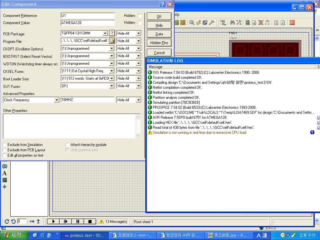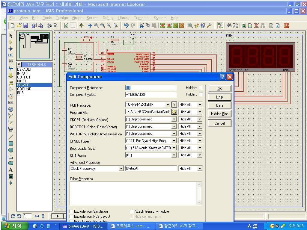 퓨즈비트 셋팅을 아무리 해보아도 시뮬레이터 내의 AVR칩(ATmega128)이 이 외부크리스탈을