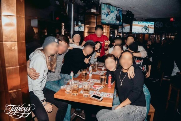 그리고 여기 와서 놀랜 것 중에 하나가, 다른 나라에도 술자리 노래가 있다는 거예요. 심지어 일본 술자리 노래는 저희랑 비슷해요. 저희 술자리 노래 중에 '로그인샷'이라는 노래 있잖아요. 입장샷이요! 이 친구들도 화장실 갔다 오거나 새로 오면 '오카에리~~ 오카에리~~'하면서 노래를 불러 줘요. '오카에리'는 일본 말로 '어서 와'라는 의미입니다. 저 날 화장실 갔다 와서 오카에리 게임에 걸렸는데, 그게 사진이 찍혔더라고요. 하하; 태플리스 펍 페이스북에 가면 그날 그날 사진이 올라와요. 여기는 펍이랑 클럽에 사진 작가님들이 있더라고요. 이것 또한 신기..!