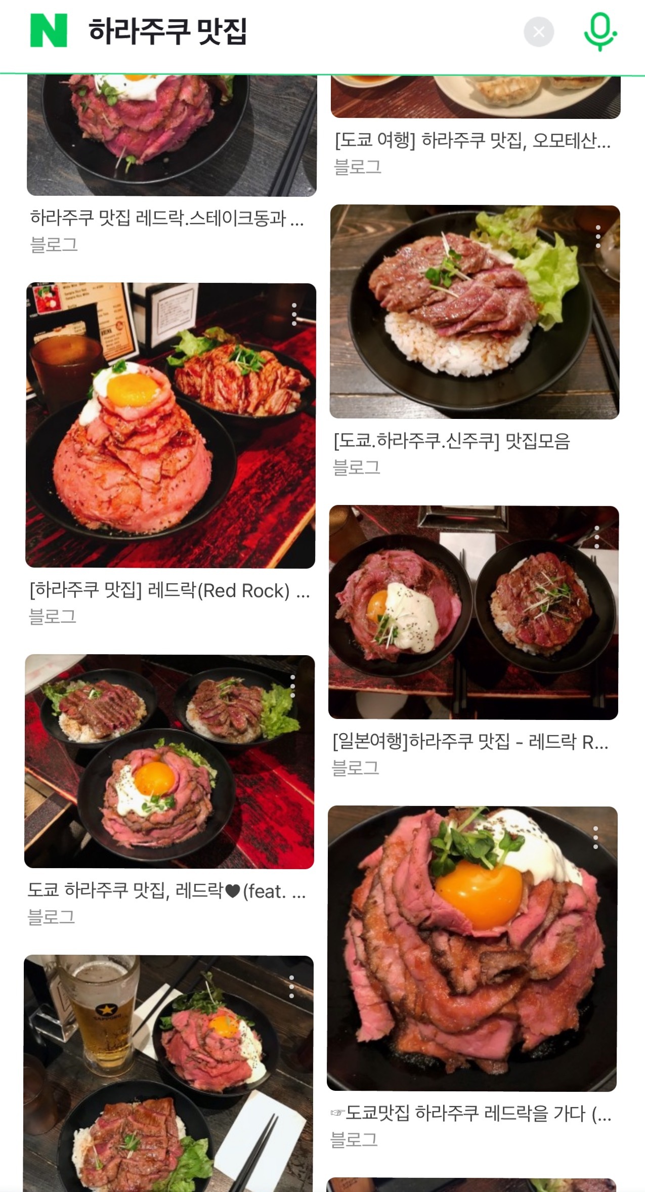 "하라주쿠 맛집"을 검색했더니
