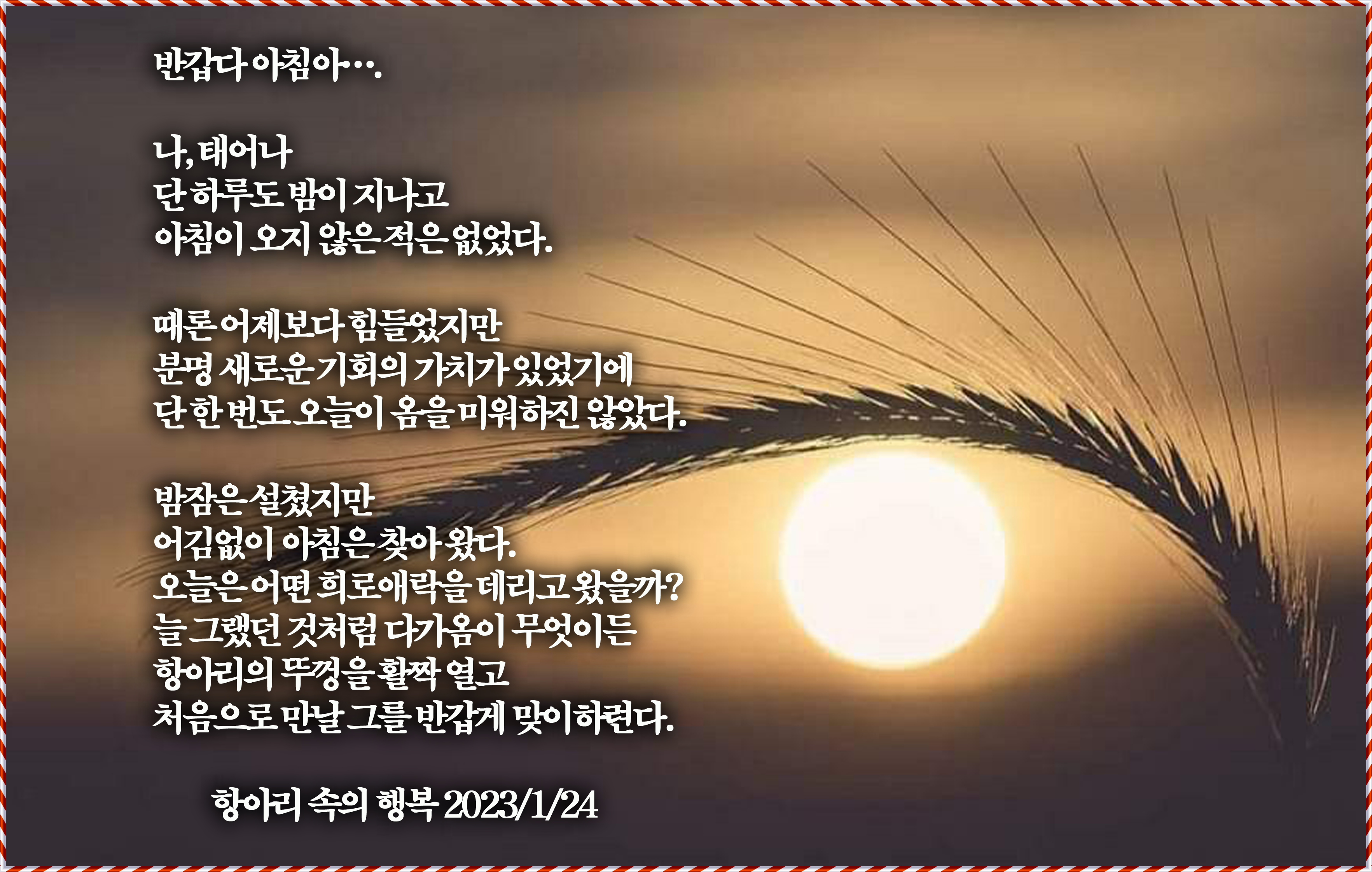 (278) 반갑다 아침아 작성자항아리속의 행복|작성시간25.08.29|조회수7 목록 댓글 0 글자크기 작게가 글자크기 크게가 다음검색 현재 게시글 추가 기능 열기 북마크 신고 센터로 신고 댓글 댓글 0 댓글쓰기 답글쓰기 댓글 리스트