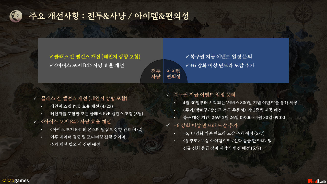 개발 과정에서 업데이트 내용이나 일정이 다소 변경될 수 있다는 점은 다시 한번 모험가님들의 양해를 부탁드립니다.