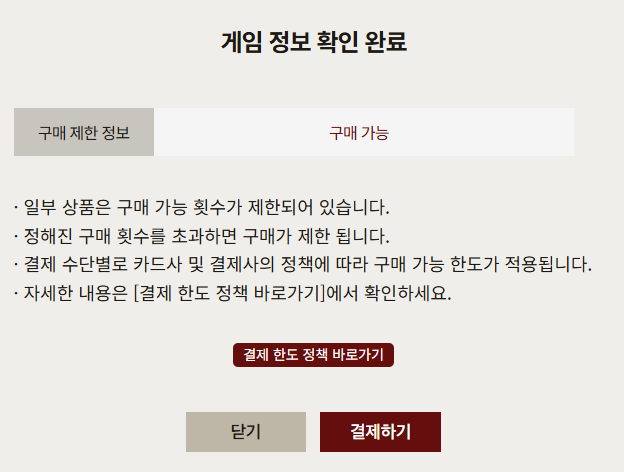- 결제 시 카드사별 결제 한도는 아래 FAQ를 통해 확인해 주시기 바랍니다.