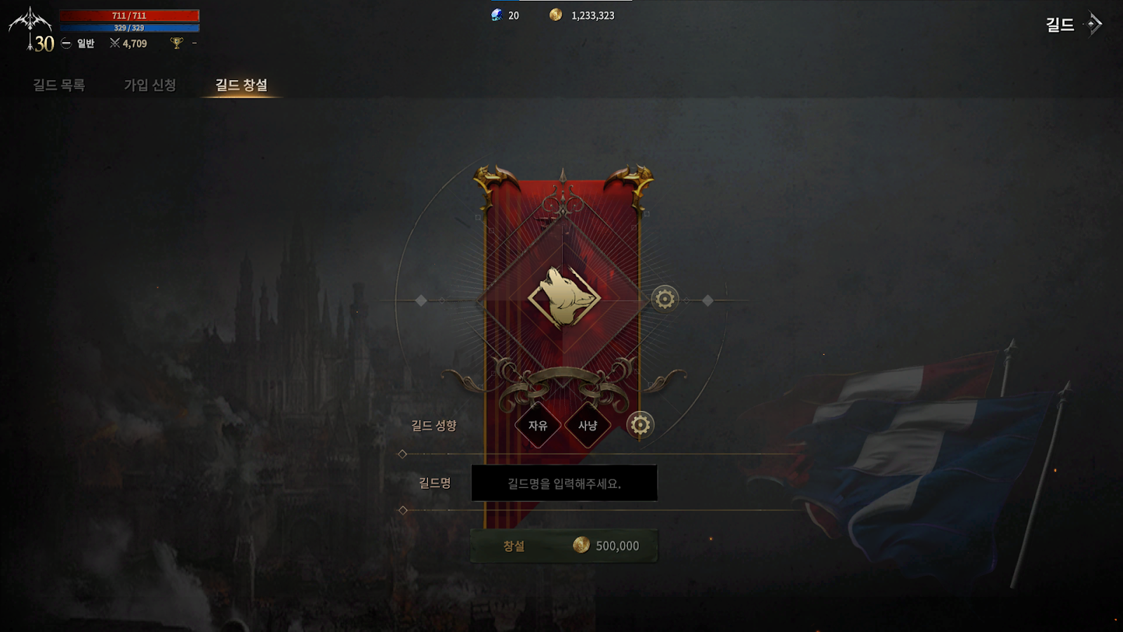 길드는 레벨 20부터 창설하거나 가입할 수 있습니다.