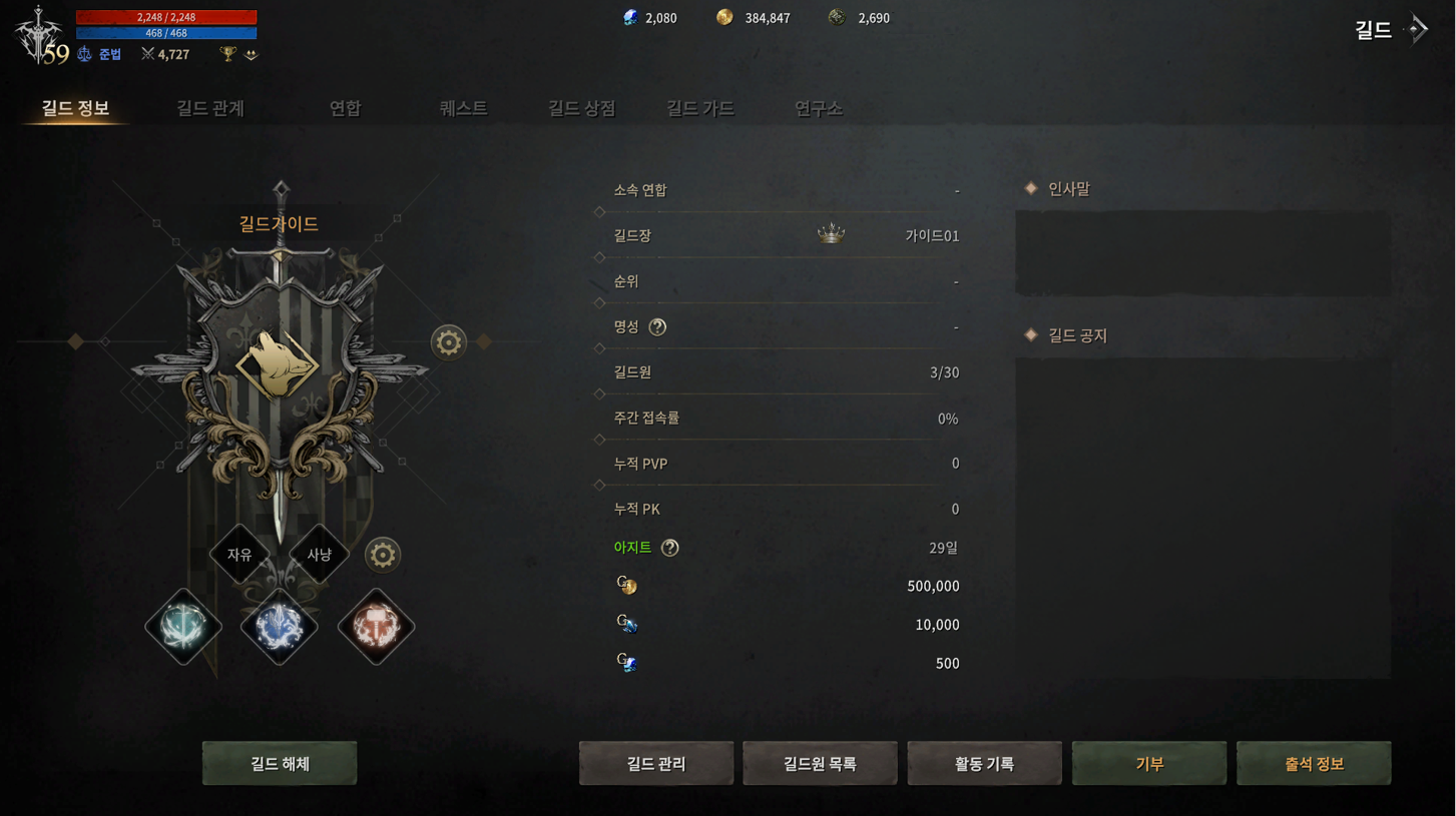 | 1 | 길드 명 | 가입한 길드의 이름을 확인할 수 있습니다. |