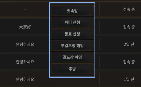 | 2 | 메모 | 길드장과 부길드장이라면 메모를 선택하여 설정할 수 있습니다. |