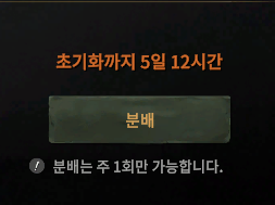 - 길드 분배는 주간 초기화 2시간 전까지만 분배할 수 있습니다.