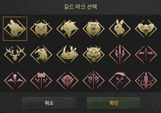 | 2 | 길드 마크 및 설정 | 설정된 길드 마크를 확인할 수 있습니다. 길드장, 부길드장이라면 우측의 [길드 마크 설정] 아이콘을 선택해 길드 마크를 변경할 수 있습니다. - 길드 마크는 연구소의 [길드 마크 연구] 단계에 따라 사용 가능한 길드 마크가 추가됩니다. |