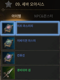 | 2 | 맵 정보 리스트 | 현재 맵에서 획득 가능한 아이템 정보 혹은 현재 맵에서 등장하는 NPC와 몬스터의 정보를 확인할 수 있습니다. |